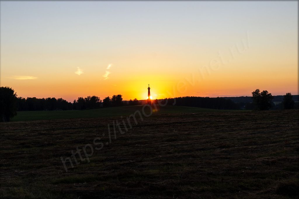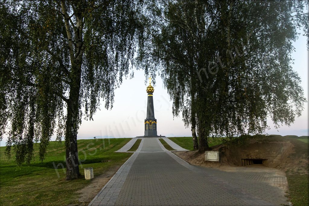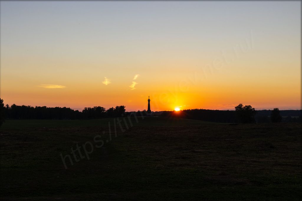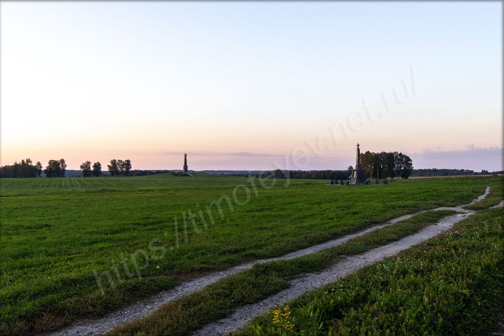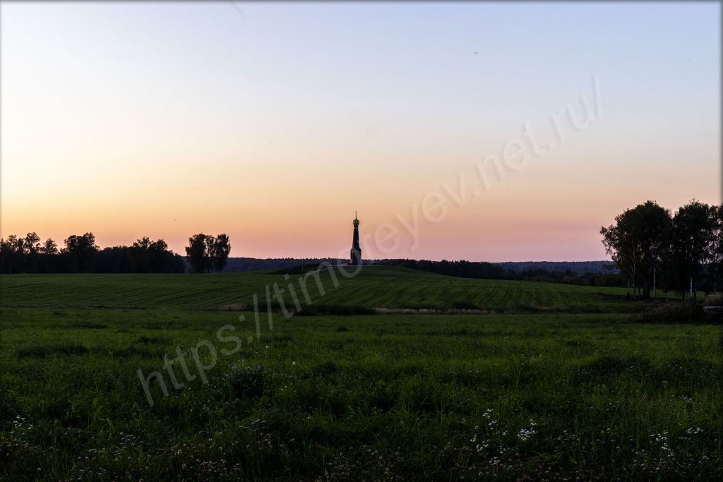Главный монумент. Дожидаться включения подсветки не стал. Пока ехал от него, то видел, как проходил последний автобус по направлению вокзала в Бородино.