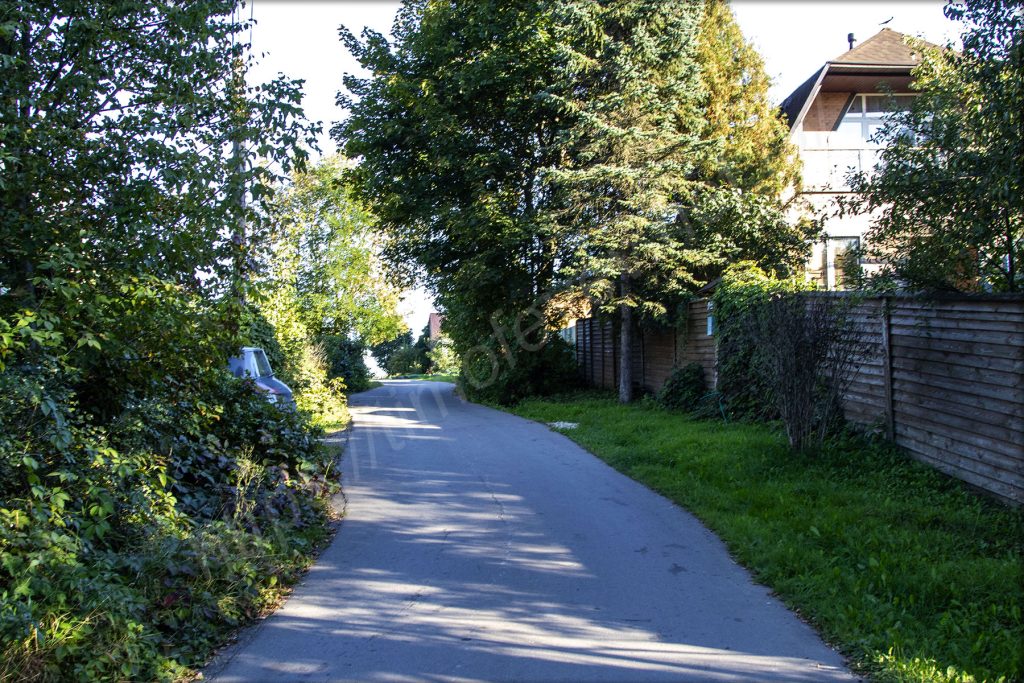 Узенькая проезжая дорожка и примыкающая к ней пешеходная. Мне туда. А какие интересные здесь домики стоят. Жаль, что постепенно эта красота исчезает. Она никому здесь не нужна.