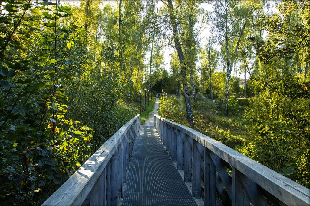 Вот я и в Соловьиной роще, обрамлённую оврагами, через которые обустроены мосты для пешеходов. Не забыли и об освещении, но только вне мостов.