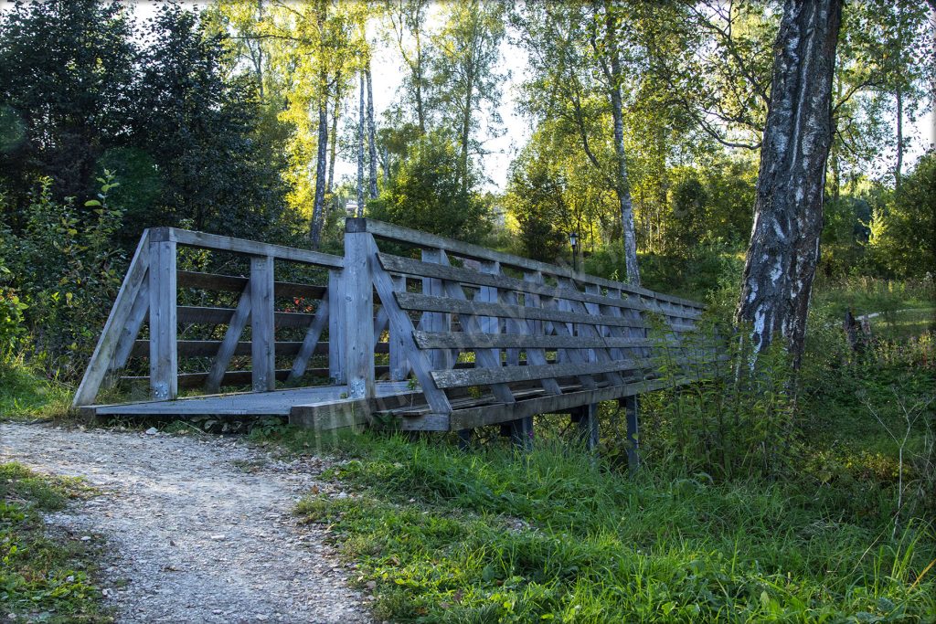 Мосты здесь разные. Есть с настилом из досок, а есть и прозрачные решётки. Не для слабонервных. Вокруг весьма живописно, хотя и всё растёт так, как ему вздумается и никто здесь ничего не прореживал. Листья в солнечном свете и на фоне чистого неба смотрятся очень выигрышно и интересно.