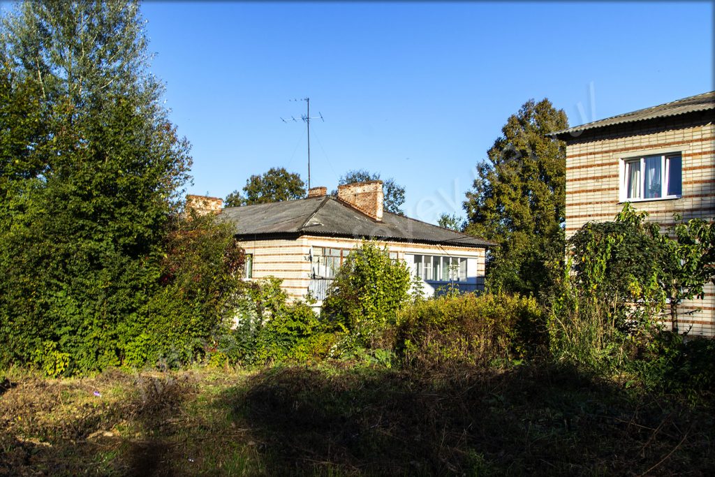 Смотрю по сторонам на многоквартирные дома. В основном здесь двухэтажные и двухподъездные, с тремя или четырьмя квартирами на каждом этаже. Подобные дома характерны для небольших посёлков городского типа. Крыши здесь открыты, поэтому они утыканы личными телевизионными антеннами. На другой стороне улицы Ленина — трёхэтажный частный жилой дом.