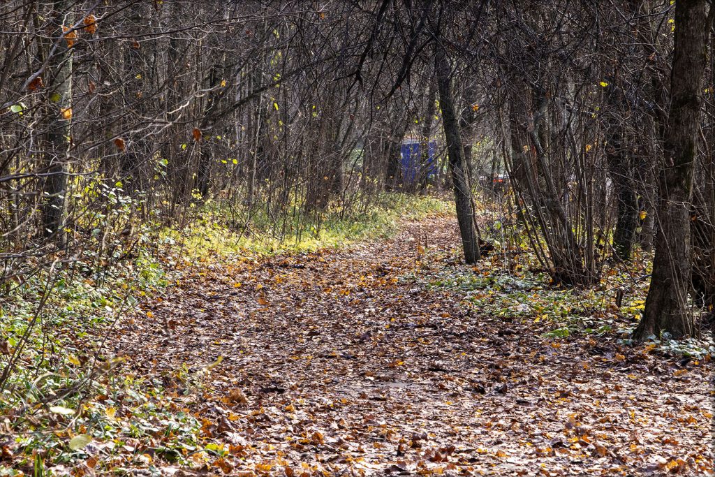 Спускаюсь по улице Кутузова вниз и ныряю снова в Нижний парк. Дорога грязная, что того гляди все кроссовки заляпаешь.