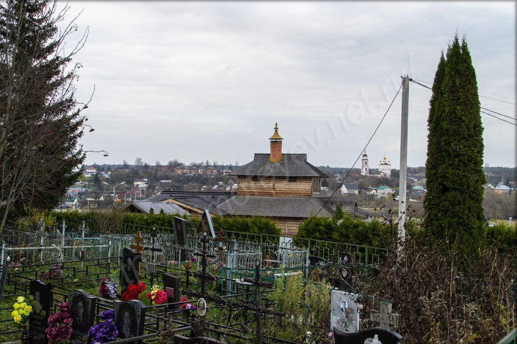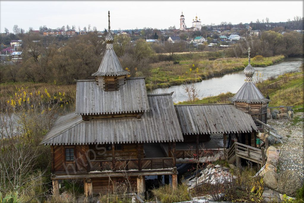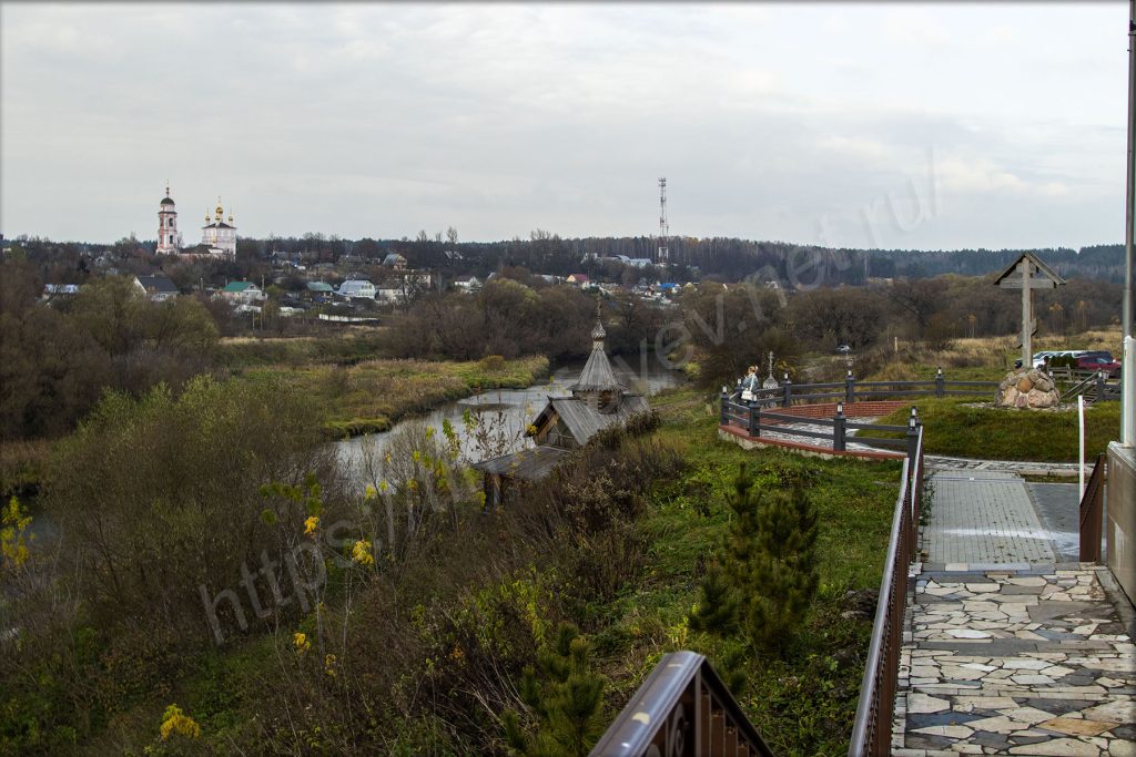 Внизу находится купель и святой источник, куда люди приезжают набрать воды домой. Разных ключей возле Боровска очень много.