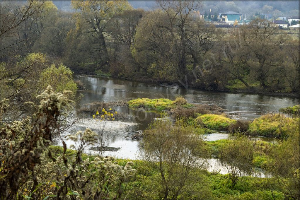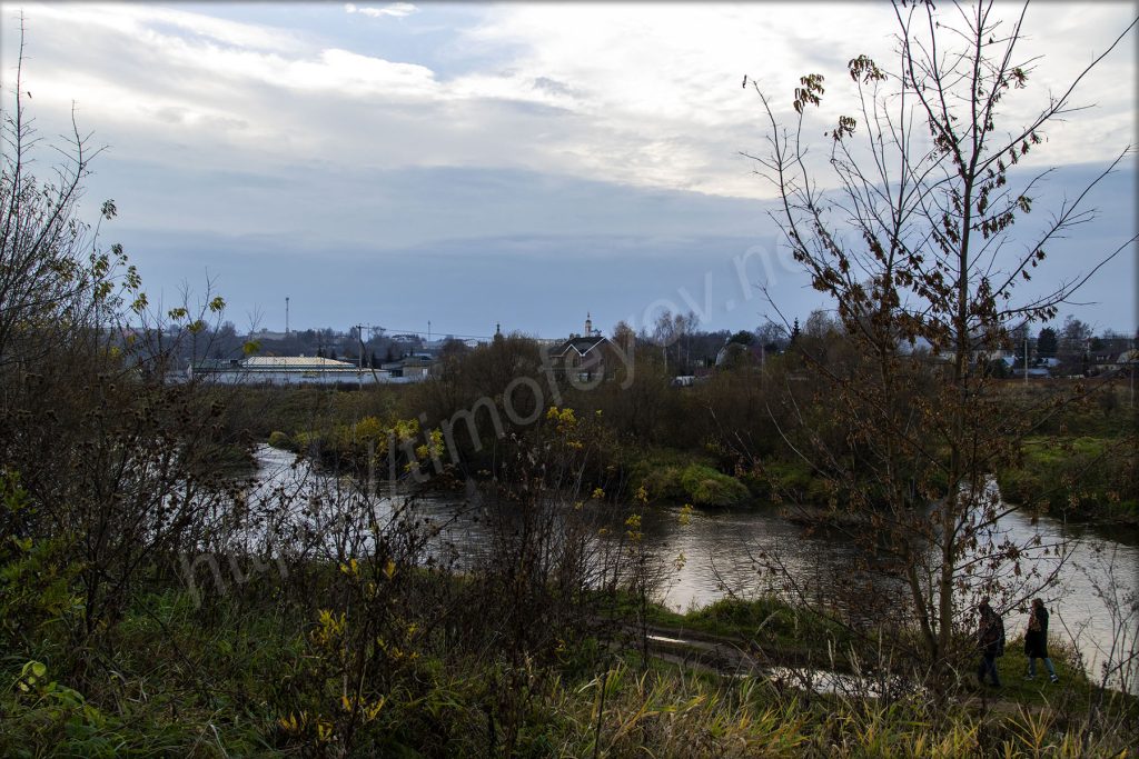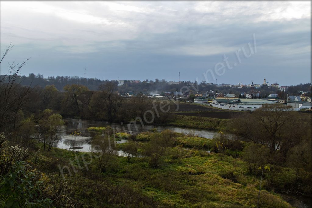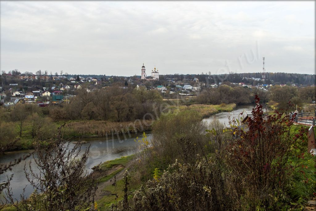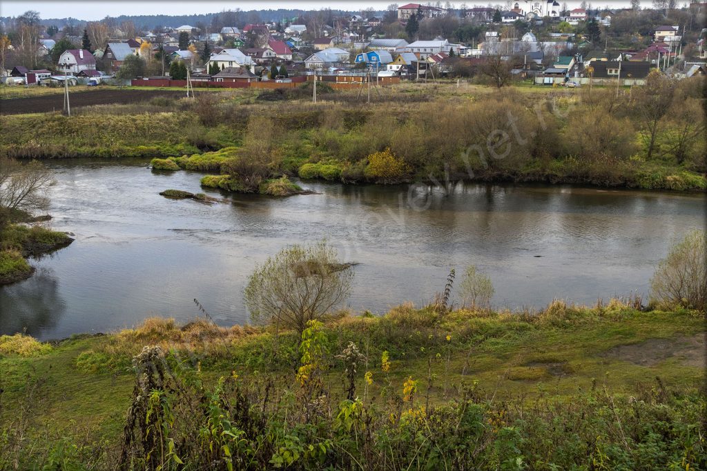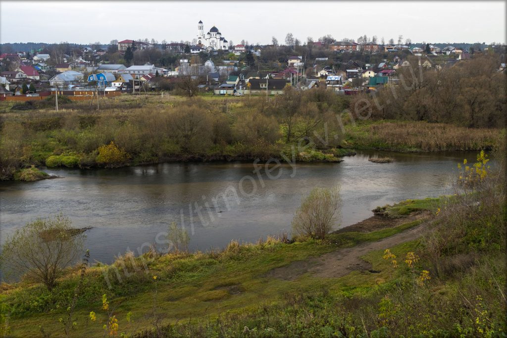 В самом низу течёт река Протва. Сегодня она сопровождает на всём маршруте. Куда ни приедешь, то выйдешь на берег или заметишь её.