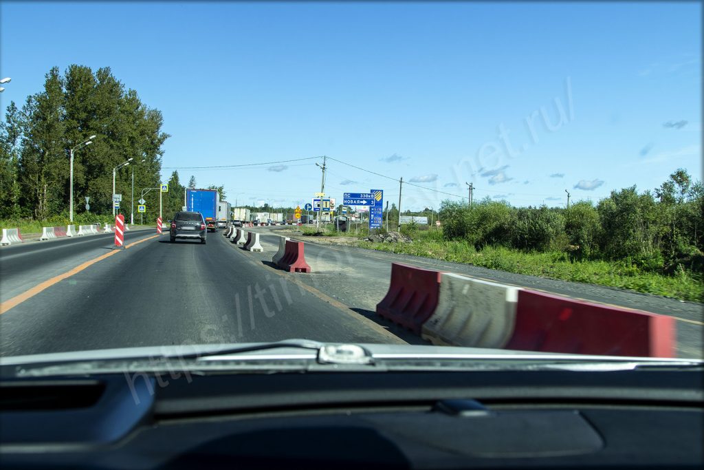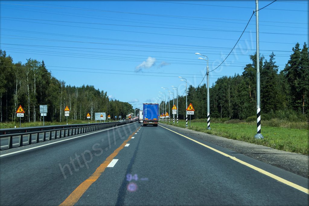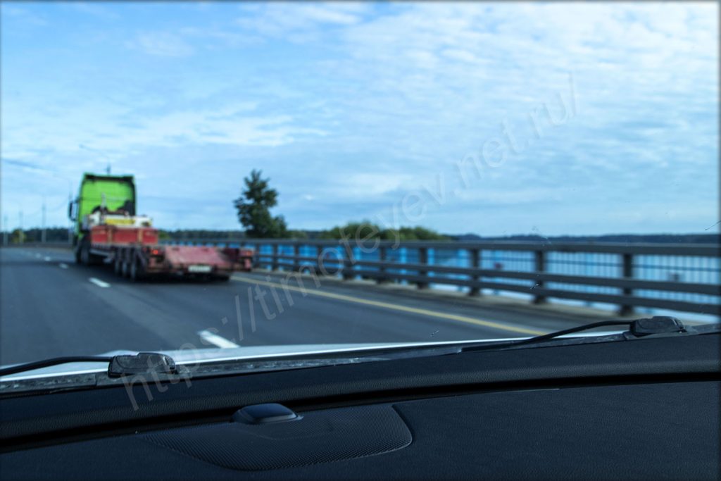 Вслед за всеми большегрузами стою в пробке перед очередным светофором, но скоро вновь быстро полетим.