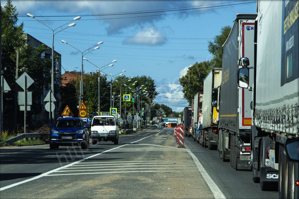 Вышний Волочёк ничем лучшим не встречает, как очередной пробкой. Придётся здесь потолкаться.