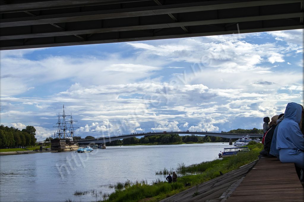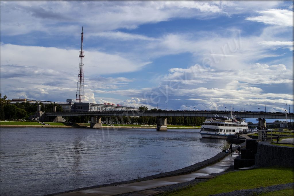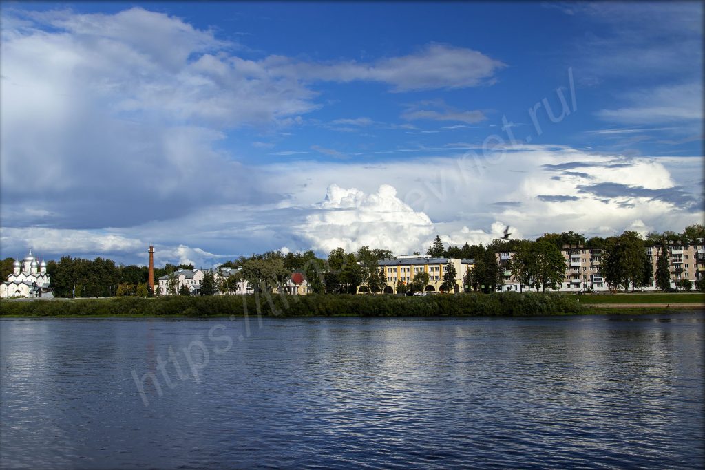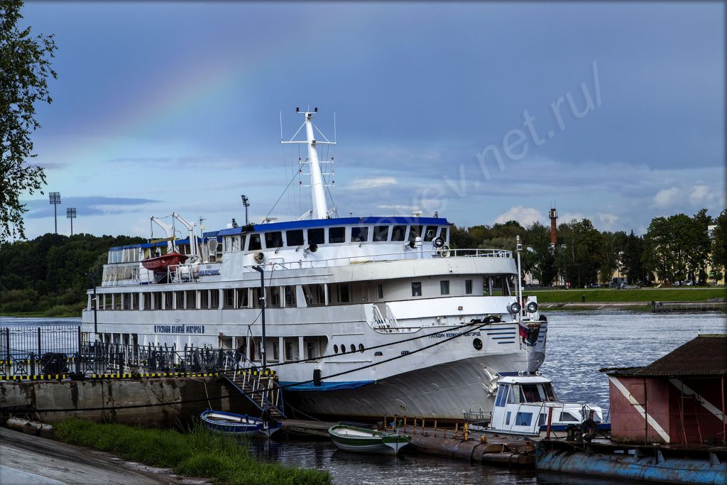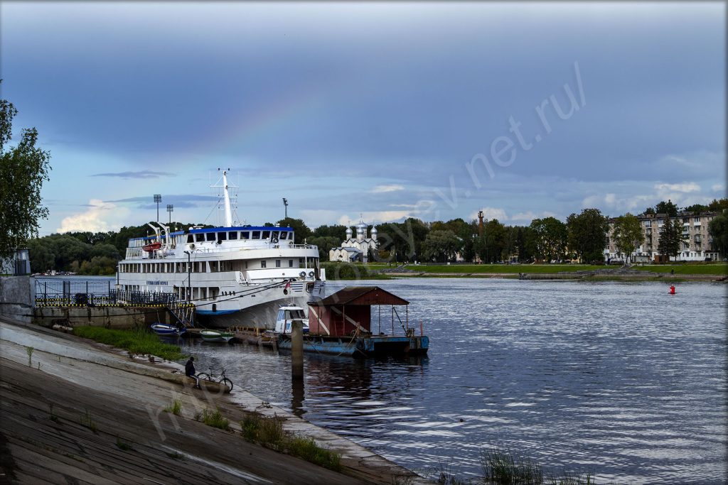 Пока гуляю, общаюсь с людьми. До меня доходит, что Новгород — это не совсем уж и правильное название. Оказывается, что теперь правильнее его величать Великим Новгородом. У пристани даже подсказка стоит. После дождя даже радуга показалась на фоне туч.