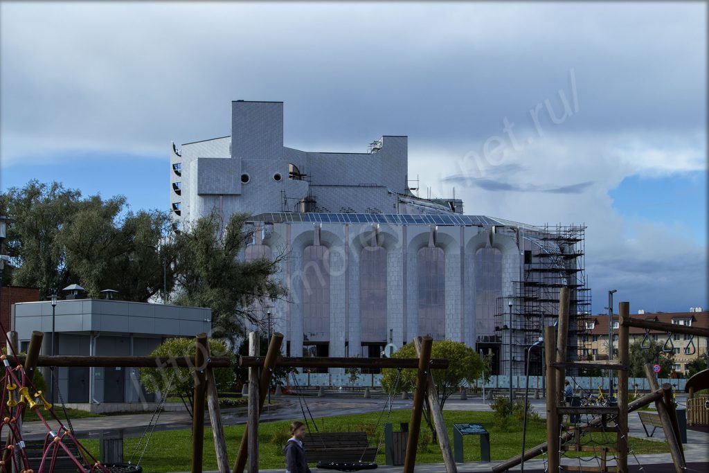 На моей стороне находится новый театр драмы, который постепенно доделывают до конца, а также старые постройки. Любо дорого посмотреть за тем, как следят за домами!
