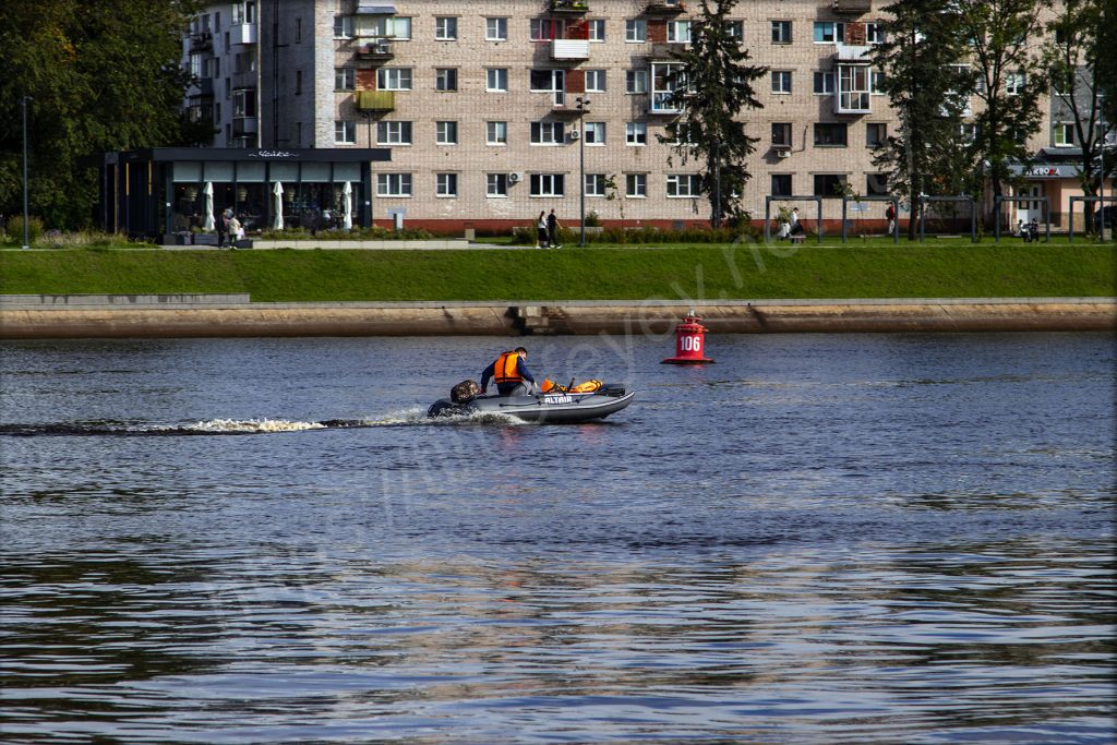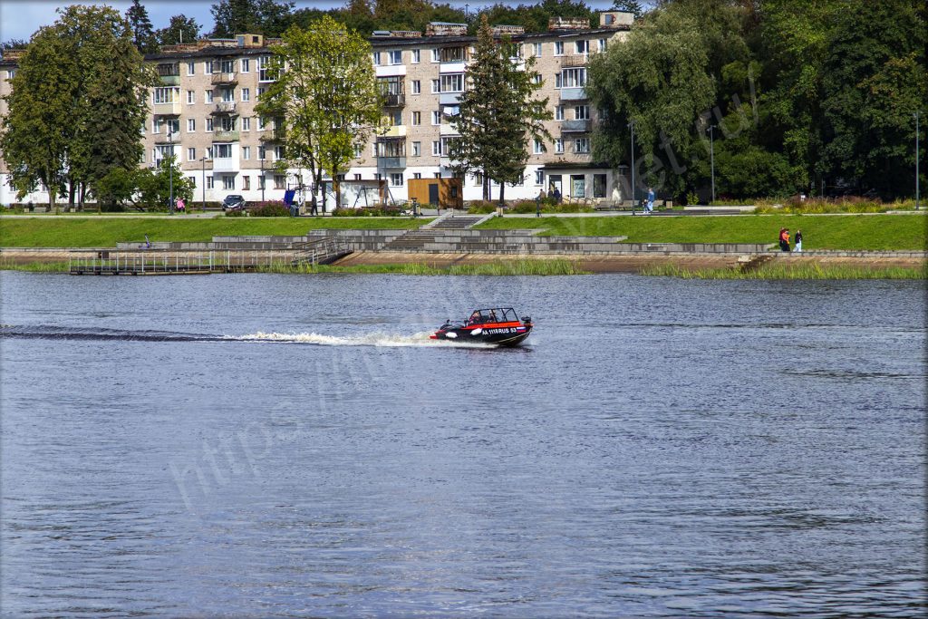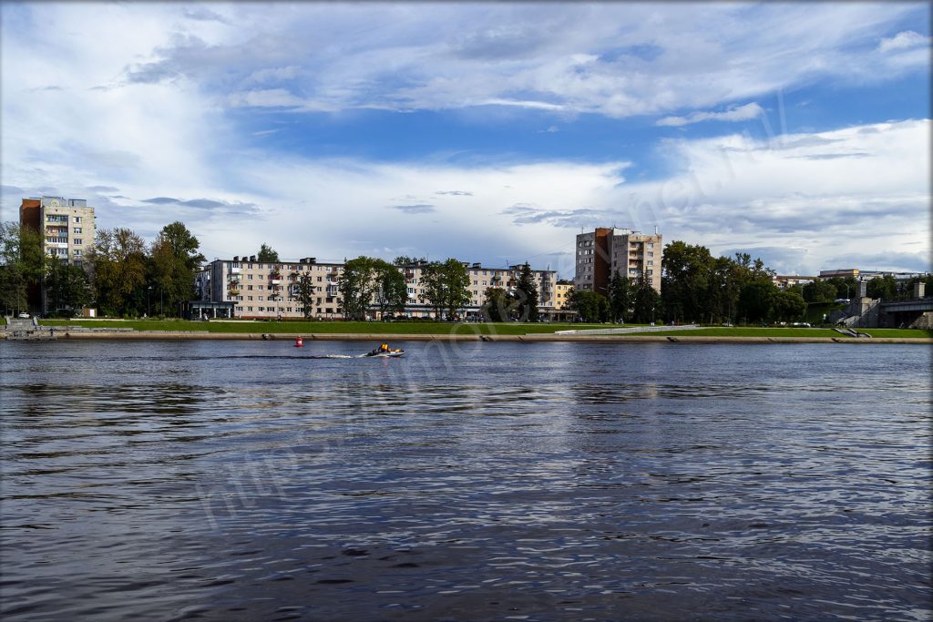 Развернувшись в обратный путь, не могу не сфотографировать то, что происходит на воде и другом берегу. По воде носятся небольшие катера да лодочки. Они не похожи на рыбачьи. Скорее, прогулочные. Город вдоль линии набережной замер по струнке.