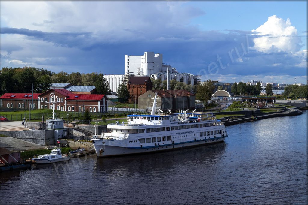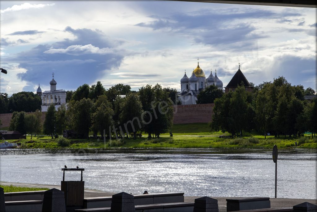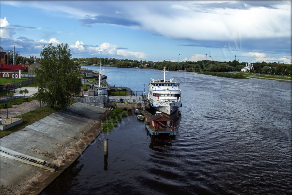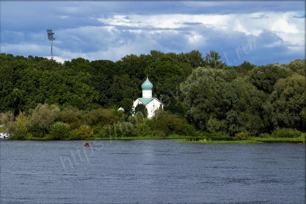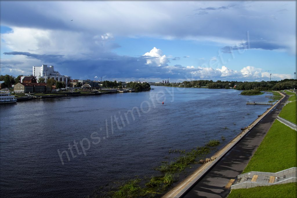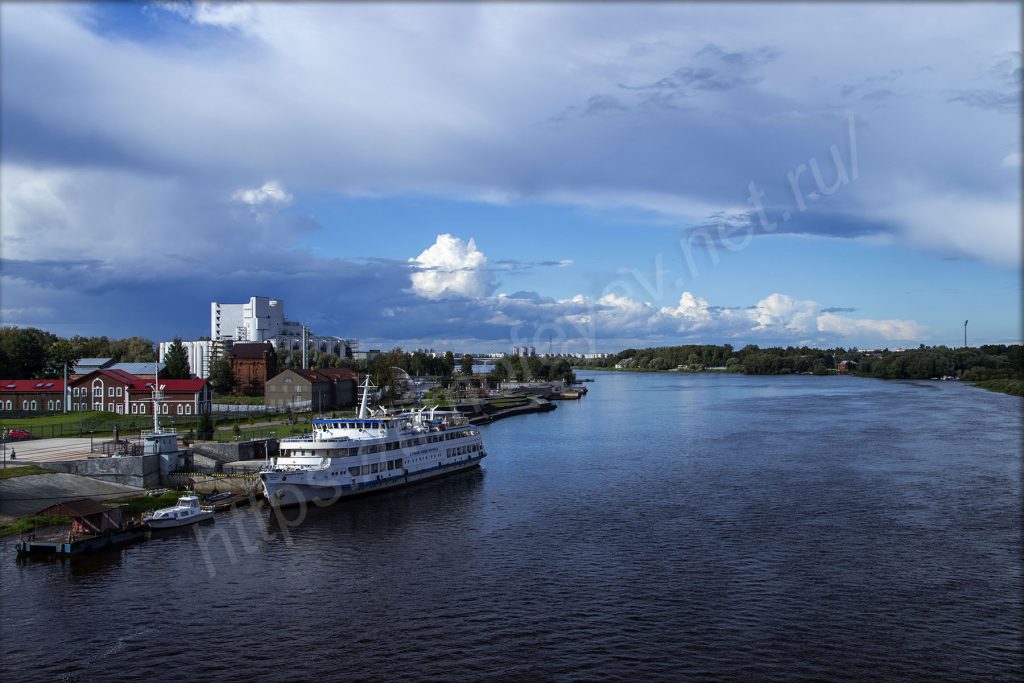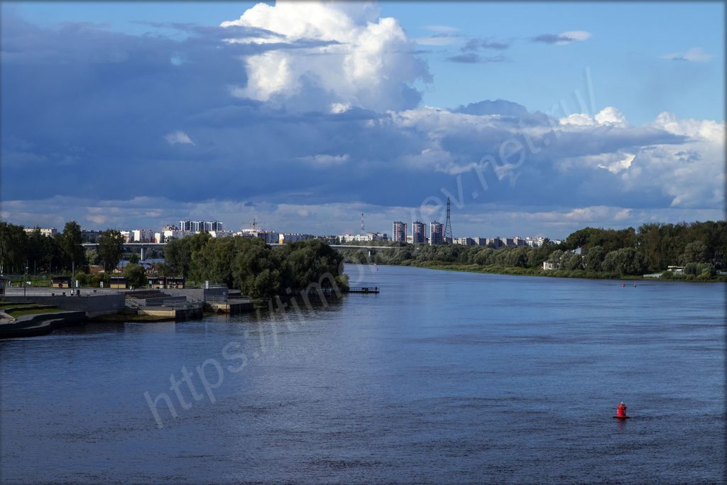 Река Волхов по направлению к Санкт-Петербургу. Отсюда видны новые высотки вдалеке.
