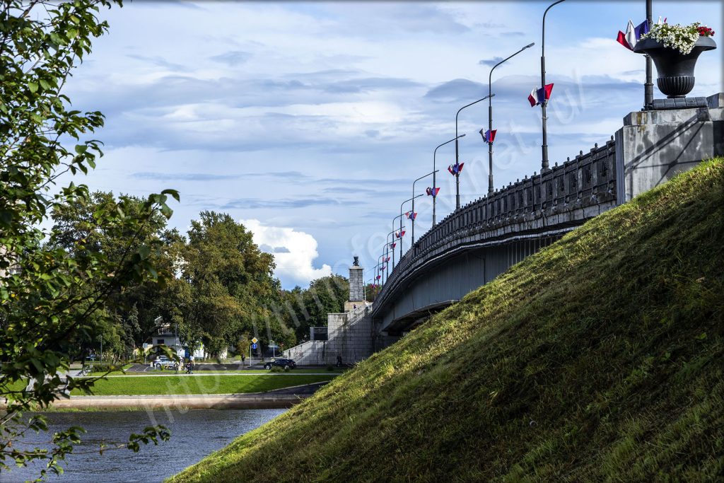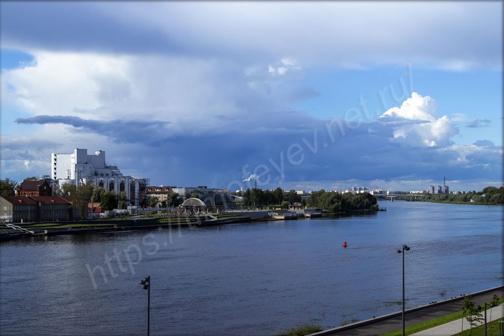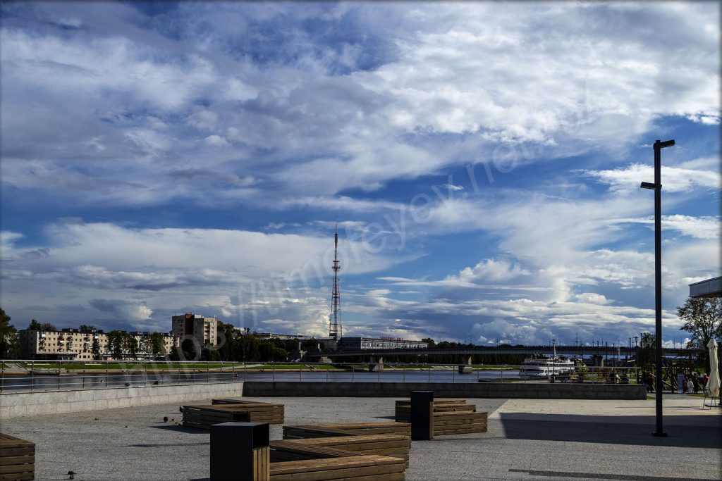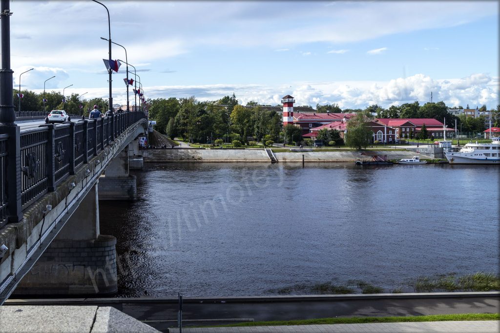 С моста фотографии получаются не менее интересными. Небо отражается в реке, а крыши домов на набережной сочетаются в контрасте с зелёным фоном вокруг.