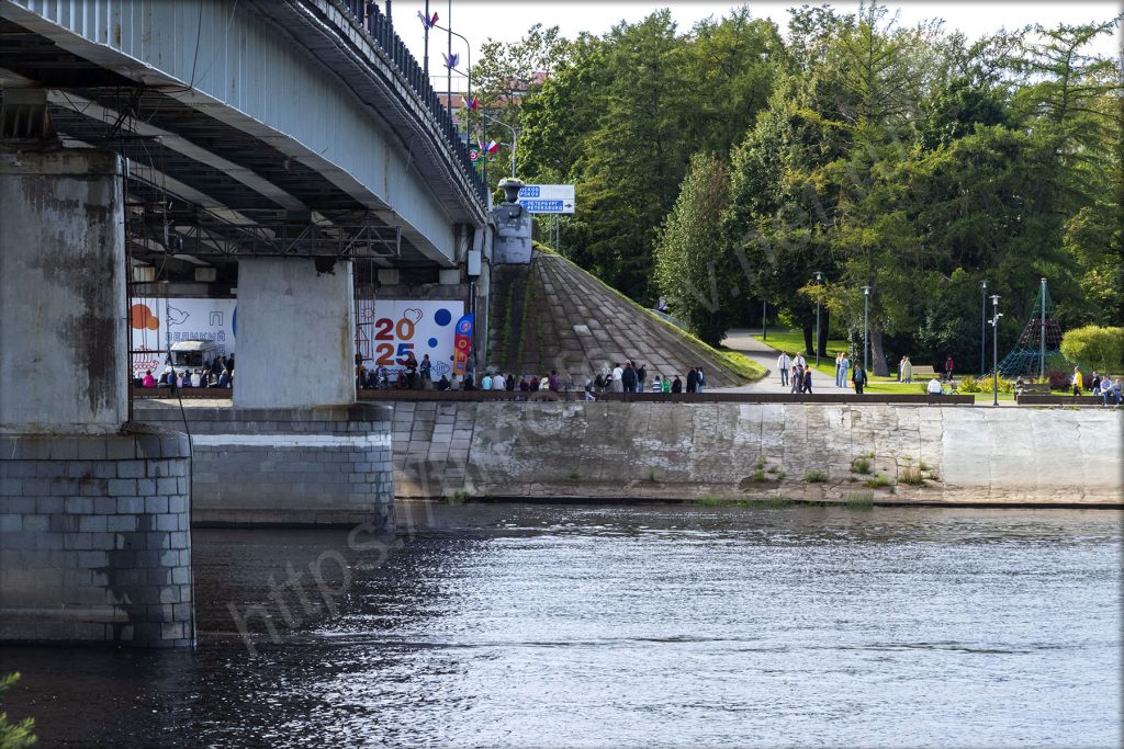 Спускаюсь под мост. Здесь это шоу барабанщиков отлично слышно. Не хуже, а может и даже лучше. Спускаюсь на набережную Александра Невского с моста.