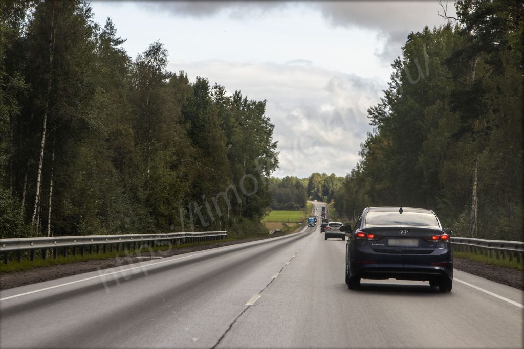 После того, как сверну на Приозёрское шоссе, поймаю большую тучу и на меня обрушатся потоки воды с небес. Ехать было крайне неприятно и сложно, поэтому примкнул в хвост таких же бедолаг, и небыстро, но прогнозируемого двигались вперёд.