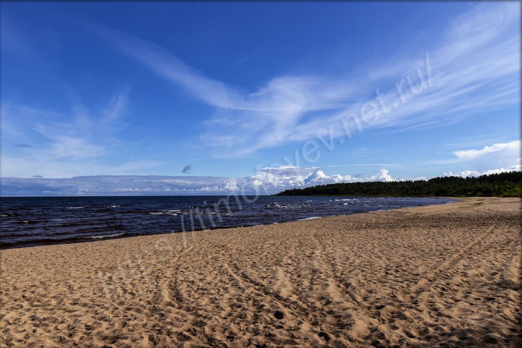Всё ради этого и затевалось, а именно выйти на песчаный пляж большого озера в Карелии. Де-юре, это не Карелия, но всё-таки де-факто, является её частью. Для жителя Москвы, неискушённого красивыми речными и открытыми пейзажами, здесь кажется необычайно просторно. Стоит только выйти на берег…