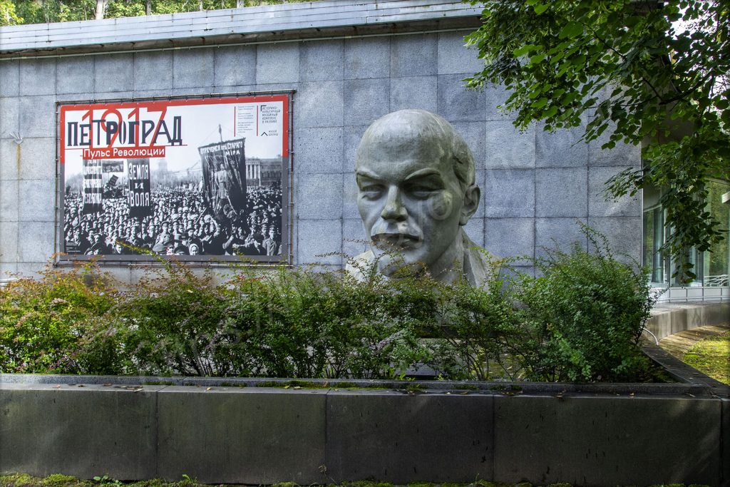 В пути есть мемориальные камни и, конечно же, памятник Ленину. Вот здесь он, как живой, и будто под какими-то веществами. Ещё никогда не видел его таким. Этот мне нравится. Он живой, в отличие от статических статуй.