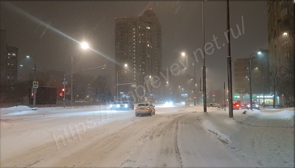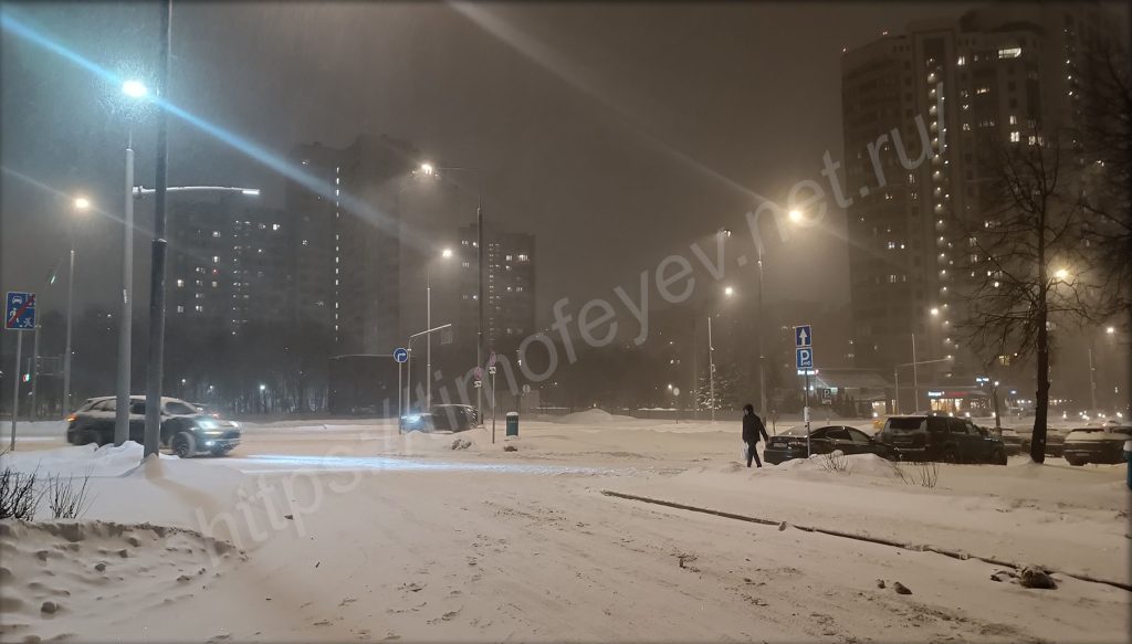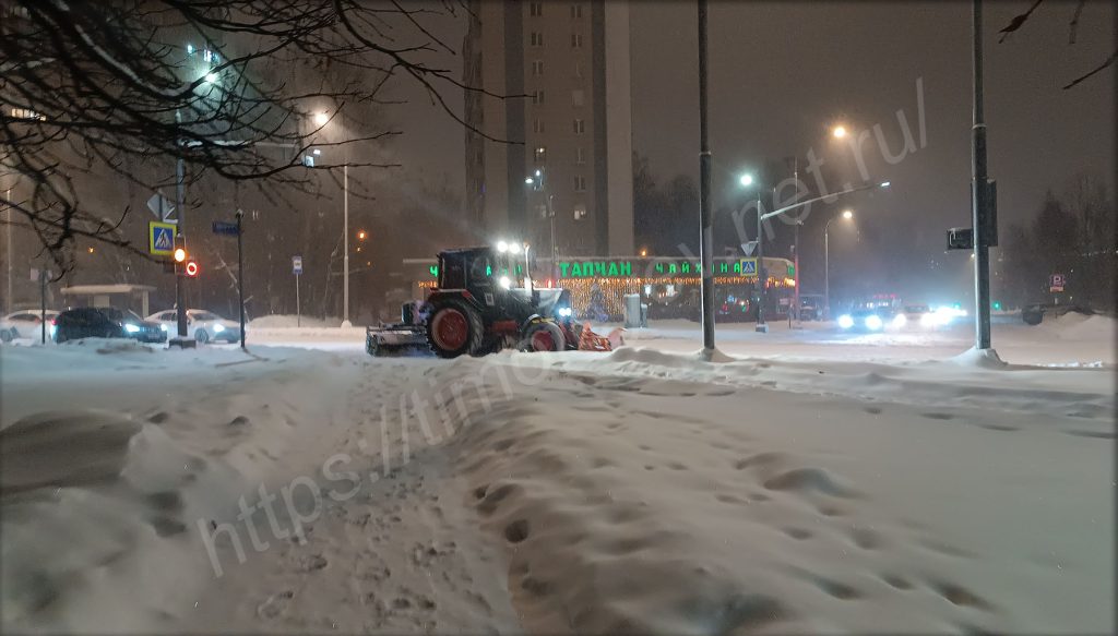 Вот уже и вышел из парка, оказавшись на перекрёстке с моей улицей. Здесь даже заметил целую «единицу» снегоуборочной техники. Снегопад усилился. Жаль, что фотографии этого не передают.