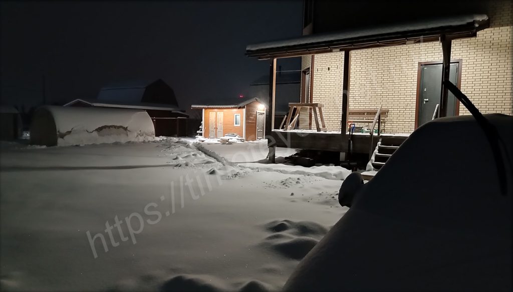 Однако, максимум циклона нам обещали не сегодня вечером, а в ночь и даже под утро. Поглядим, посмотрим. На даче уже к тому времени засыпало очень хорошо, что даже те, кто был против трактора ранее, сказали, что он был к месту.