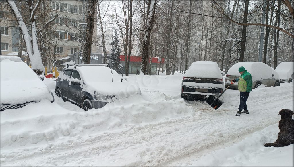 В обед растолкал себя и сначала пошёл в магазин, а уже потом — чистить снег вокруг машины. Снега много, но до рекордов зимы две тысячи двадцать первого года далеко. Конечно, снег у нас никто не чистил ещё, кроме трактора, который промёл с утра и на этом всё. Удивительно, но я был не единственным кто вышел чистить. Обычно никого, а тут несколько человек с лопатами.