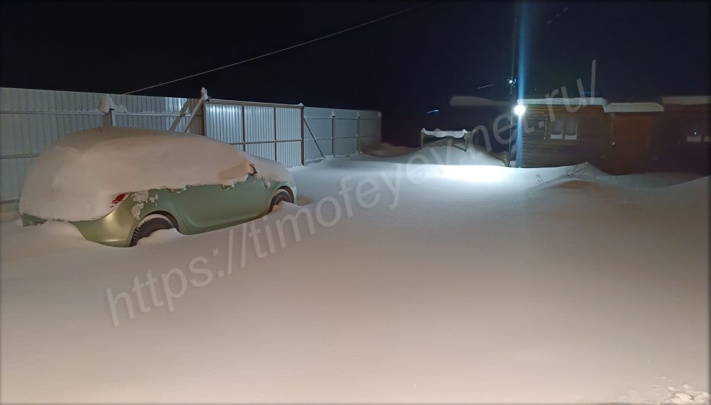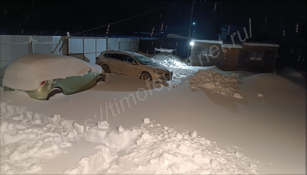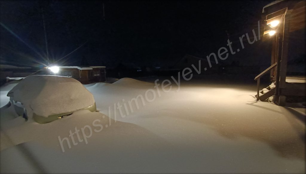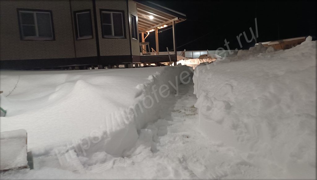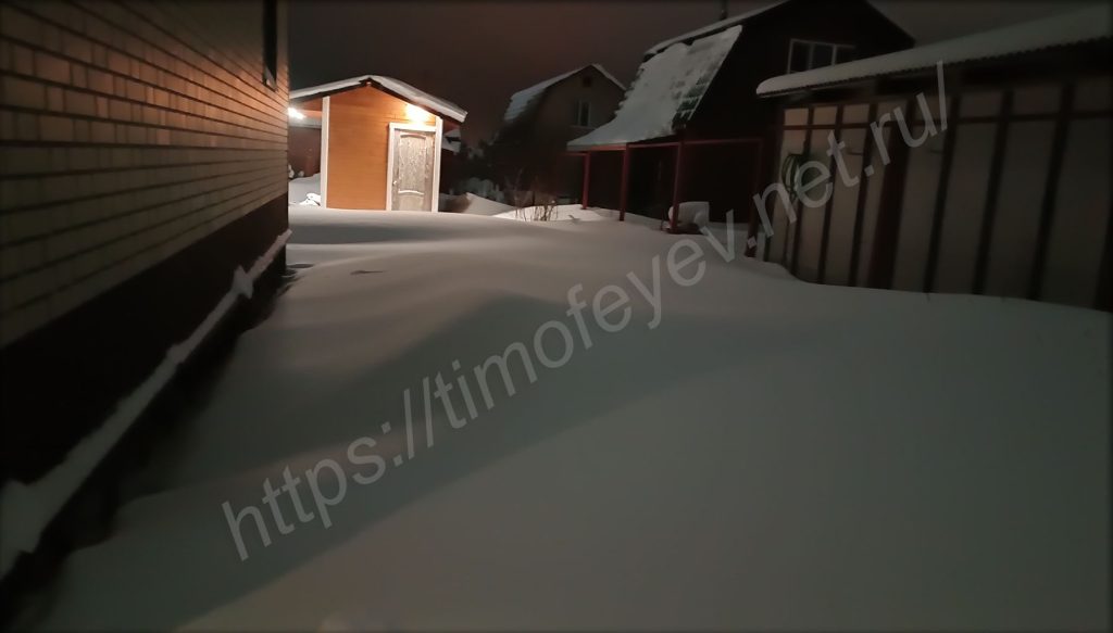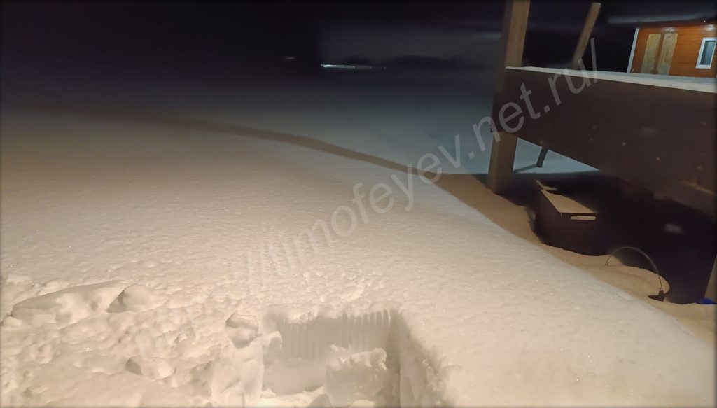 За день на уборку снега потратил чуть более четырёх часов. Неплохой результат, если до сих пор ещё стою на ногах и ничего не болит. Погулять по посёлку? Нет, спасибо! Сил никаких нет! А снег всё идёт и идёт!