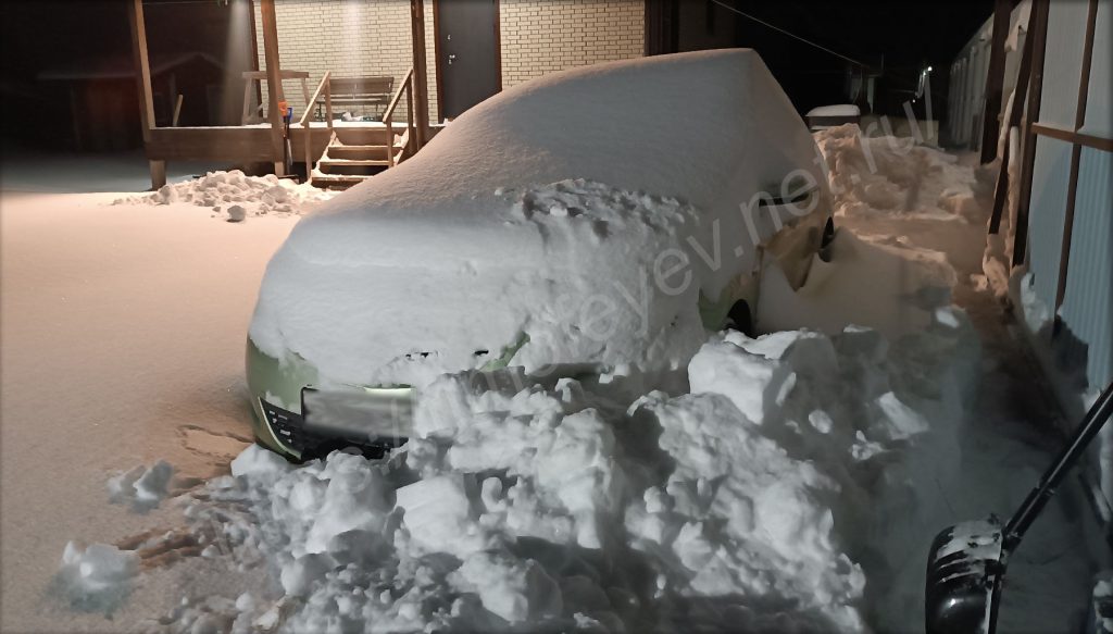 За всё время, что копал, проехала только одна машина по нашей улице. Сейчас двум машинам просто никак не разъехаться. К тому моменту у меня уже был готов въезд, куда мордой и влез. Ещё чуть-чуть поднажать в течение часа — всё готово. Можно въехать. Остальное завтра! Гашу свет и исчезаю за дверью дома. Внутри очень тепло. Все вещи надо обязательно поставить на просушку.