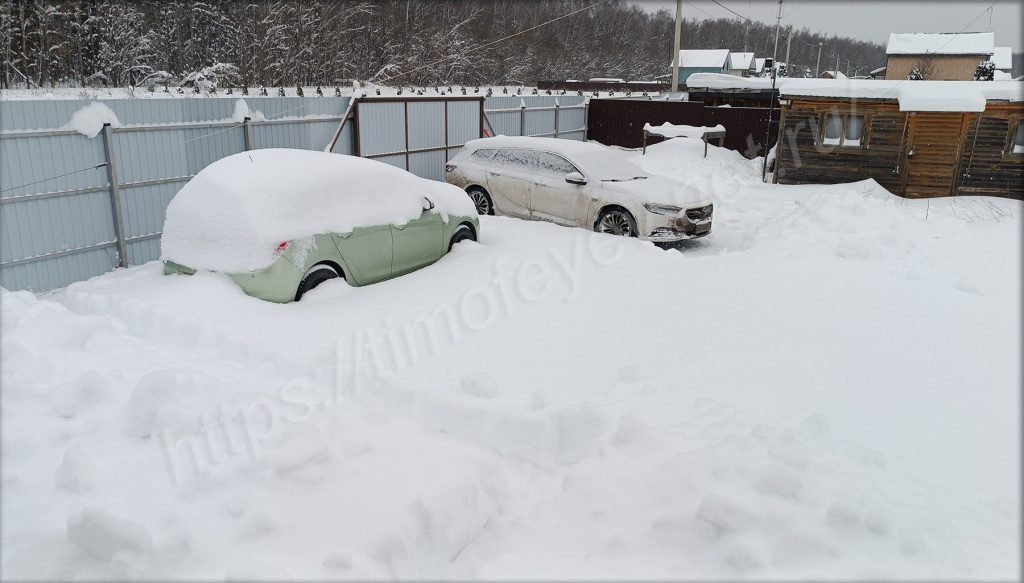 Внутри меня ждала девственная снежная целина, высотой снега сантиметров в тридцать. План действий был простым: очищаю вначале у ворот, а потом уже режу бруствер за ним. А дальше вычистить площадку так, чтобы влезла машина на участке. Всё остальное — потом. Зашёл в дом. Занёс вещи. Переоделся. Решил, что сейчас мне и в худи с жилеткой будет нормально. Вышел на борьбу со снегом.