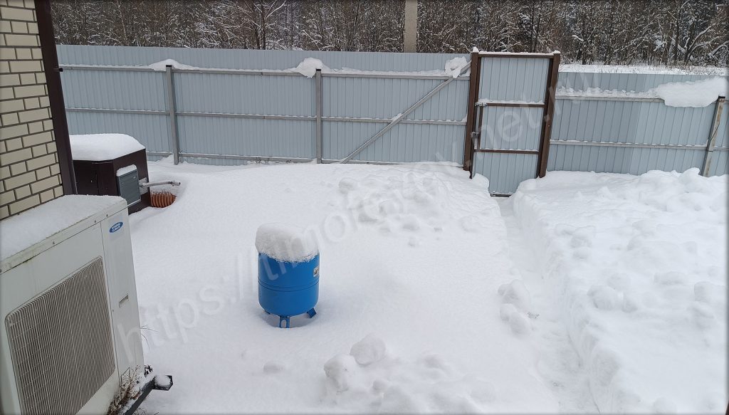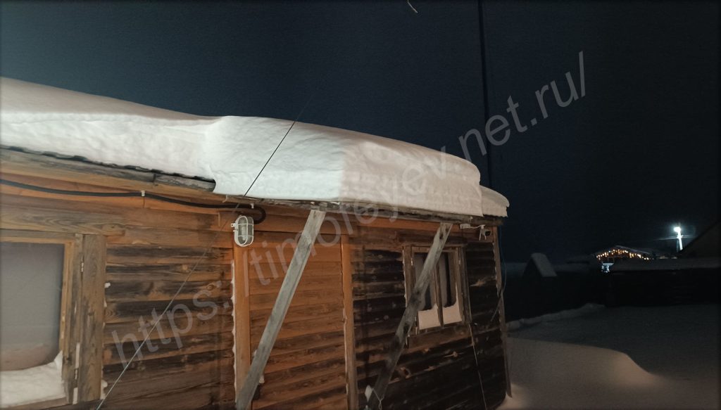 До бытовки вроде бы и близко, но не так-то просто пробраться. Высота снега с перемётом, который стал достаточно плотным, уже по пояс. Этот снег также надо вывезти за пределы участка. После счистил снег с теплицы. Он уже с ледяной корочкой и очень-очень тяжёлый, когда падает прямо на тебя.