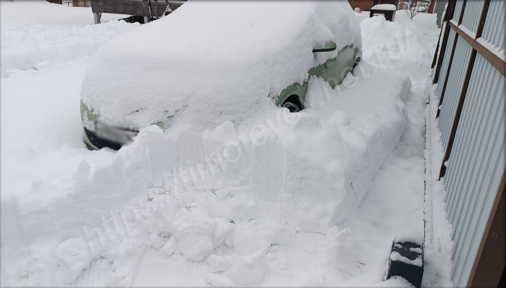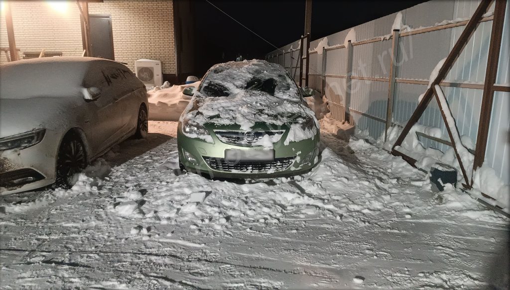 Напоследок оставил расчистку Опеля. Он занесён прямо по антенну на крыше. Это очень много снега. Полкуба плотного его точно бы набралось.