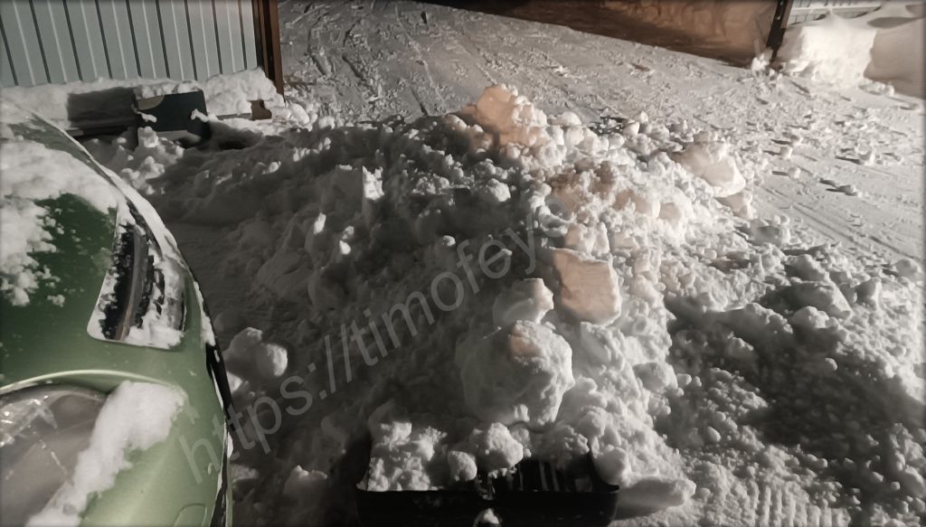 Я уже почти вошёл в режим. Закончился рабочий день. Ужин. Небольшой отдых с чаем, и пора браться за работу. Во-первых, убрать то, что навалил перед въездом трактор, дальше расчистить дорожки и заняться расчисткой крыш.