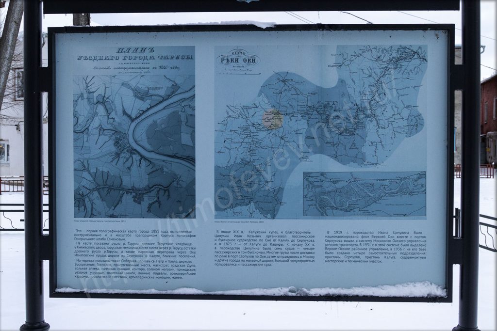 Карты старой Тарусы двухвековой давности, а рядом карта Оки от своего начала до стрелки с Волгой.