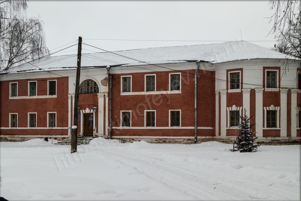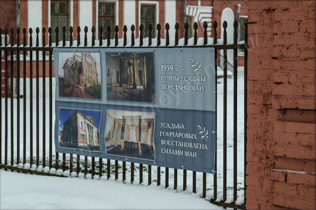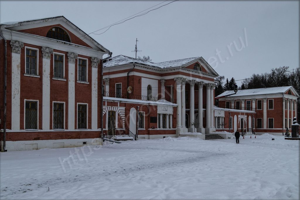 Попадаем на площадь перед главным корпусом усадьбы Загряжских-Гончаровых. Она ограничена строениями: главным корпусом, домом прислуги и конюшенным двором, что не дожил до наших дней, хотя здание и осталось, но денника там нет.