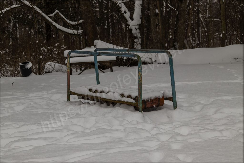 Сделав несколько фотографий, идём дальше, в сторону леса и реки Лама. Здесь, за территорией усадьбы, есть ещё советские тренажёры.