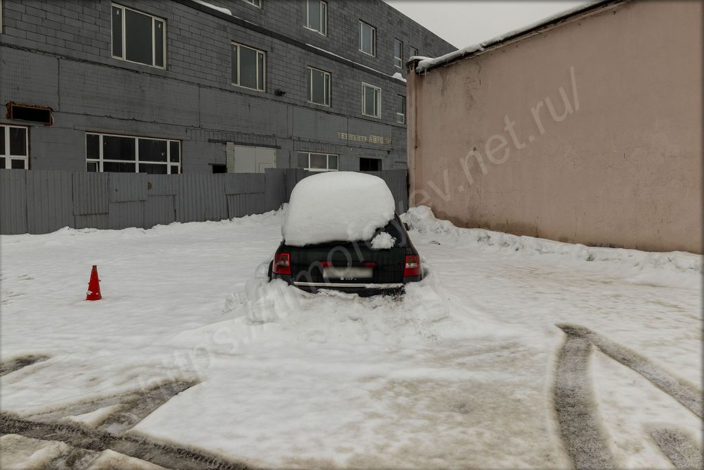 Дальше мне нужно перелезть через снежную кучу. Лучше всего это сделать вдоль забора. Да и протоптанную тропинку тут вижу. Так окажусь на площадке у мойки и пиццерии. Эту Ауди, по-моему, я ещё даже помню с тех времён, когда работал тут.