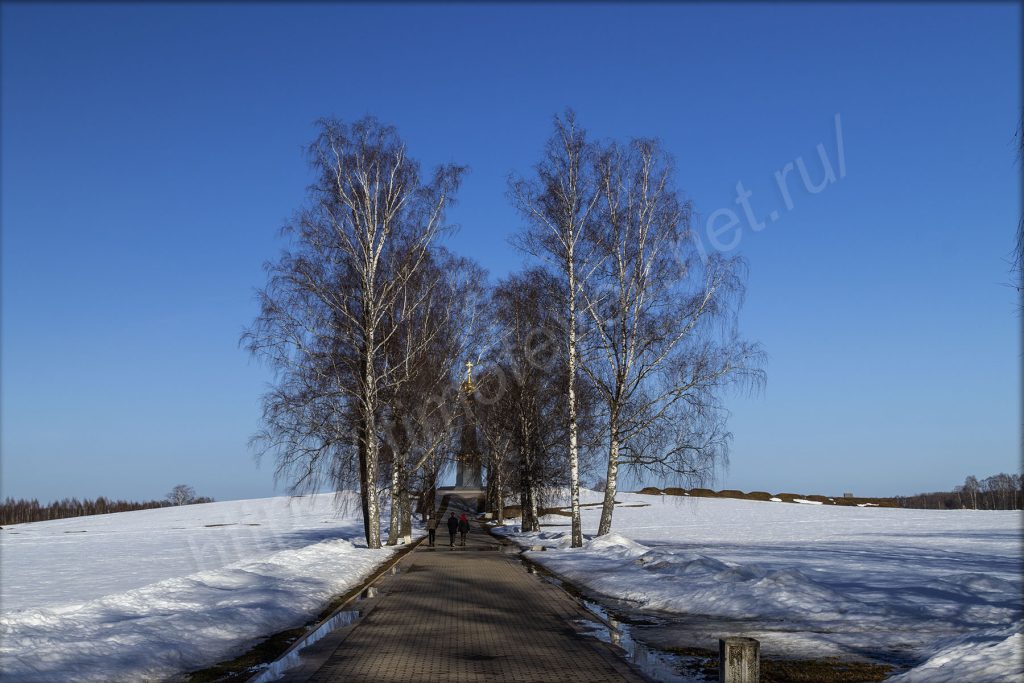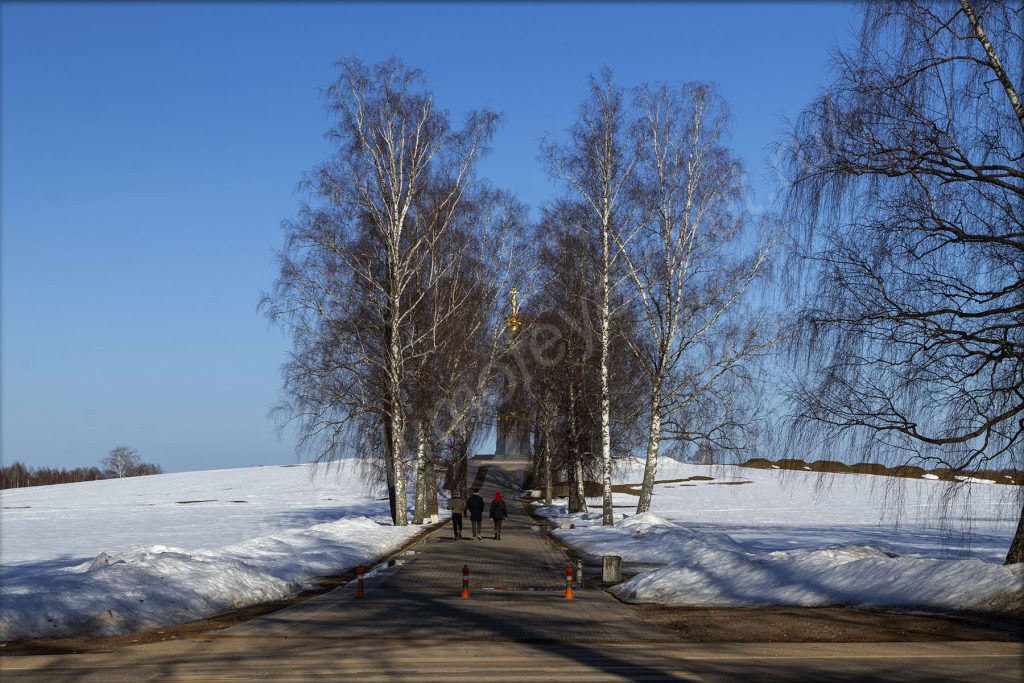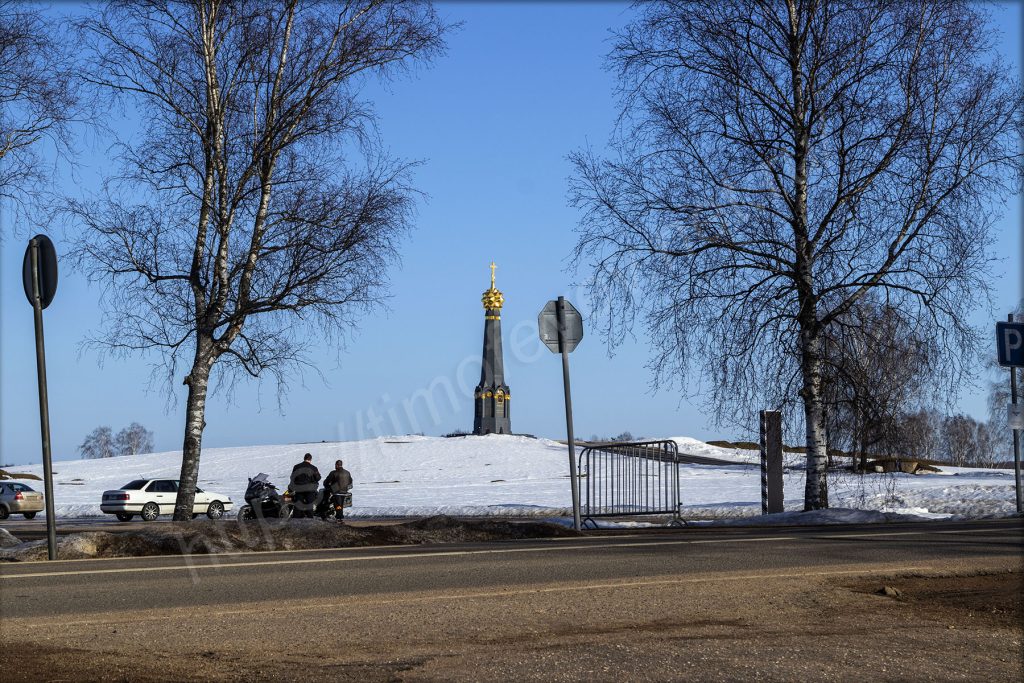 Памятник «Героям Бородинского сражения» стоит на своём месте. Здесь ничего так сильно не меняется последние почти сорок лет. Весна сюда ещё не дошла. Доехали только мотоциклисты.