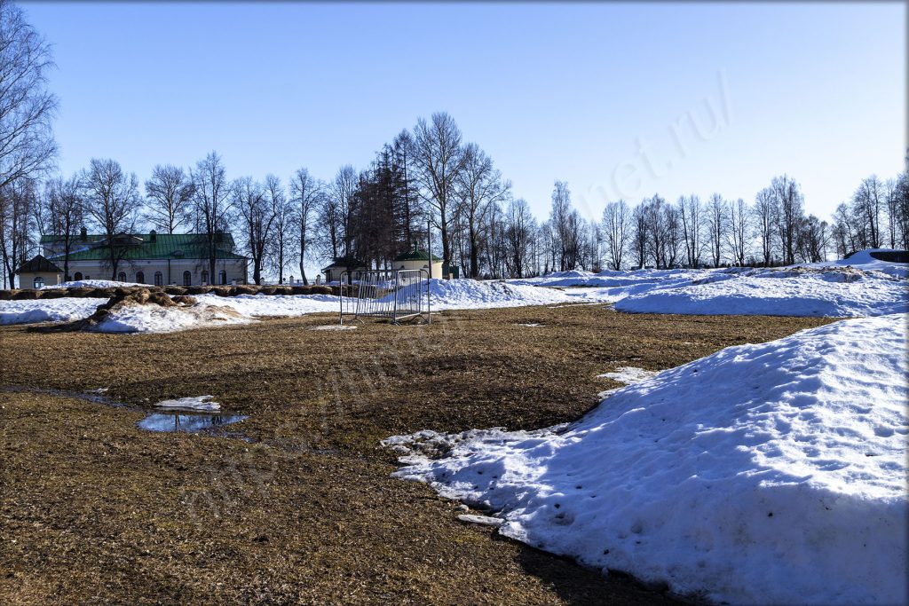 Но солнце и тепло делают своё дело. Небыстро, но очищают поверхность земли от снега, испаряя его, будто бы никогда и не было его здесь. Вдали за музеем тоже виднеется что-то, но отсюда разобрать не могу, а нырять в снег не входит в мои планы. В следующий раз доберусь и внимательнее рассмотрю.