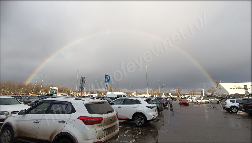 По пути свернул в магазин, когда шёл от машины, то обернулся и увидел первую в этом году радугу! Красиво!