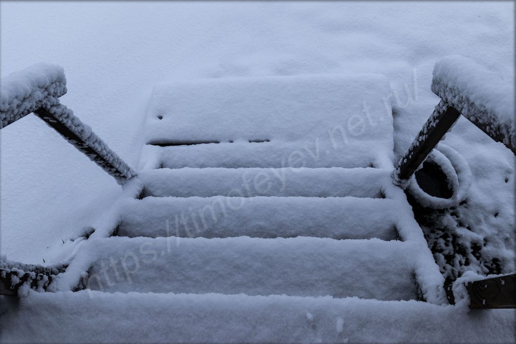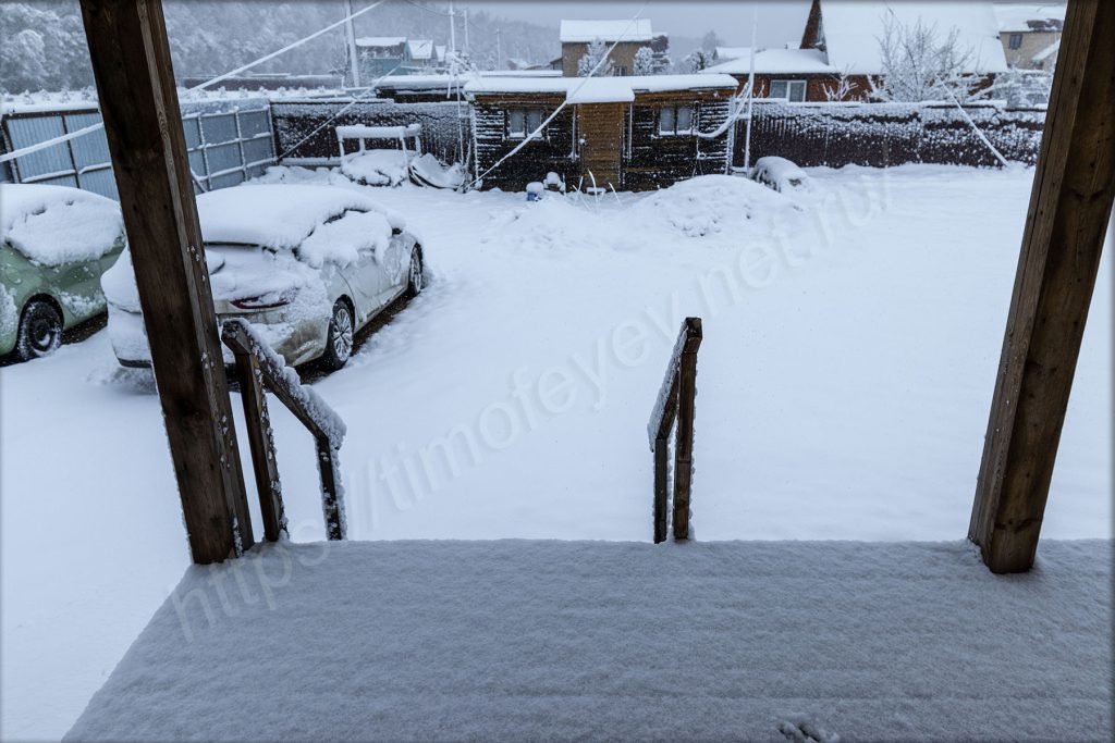 Аккуратно открываю дверь. Будто боюсь спугнуть снег, ещё нетронутый никем. Да, подсыпало неплохо! Снег мокрый, липкий — и собой заполняет всё пространство. Снег просто везде!