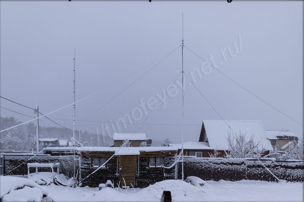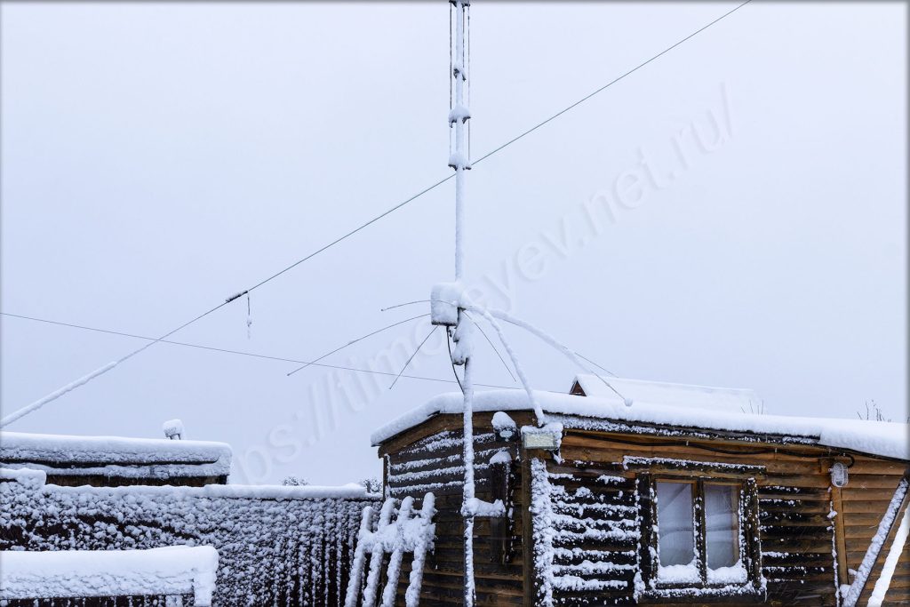 Даже на противовесах вертикальной антенны видно много снега, что загнул их к земле. Они либо сами выпрямятся, либо чуть-чуть попозже займусь ими.