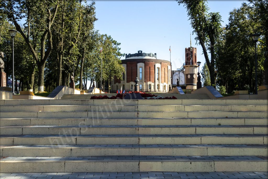 Паркуюсь напротив аллеи героев, по которой можно пройтись до музея Великой Отечественной войны. Название улицы Коммунистическая говорит само за себя. Судя по фасадам домов — попал в то самое время. Город застыл в архитектуре неопределённости, где-то между двадцатыми и шестидесятыми годами прошлого столетия.