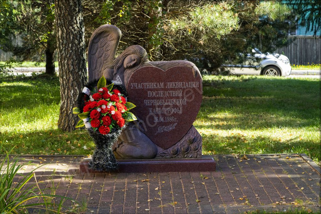 Обхожу его справа, возле входа, и передо мной появляется памятник участникам ликвидации последствий Чернобыльской катастрофы. Похожих памятников очень много по всей России.