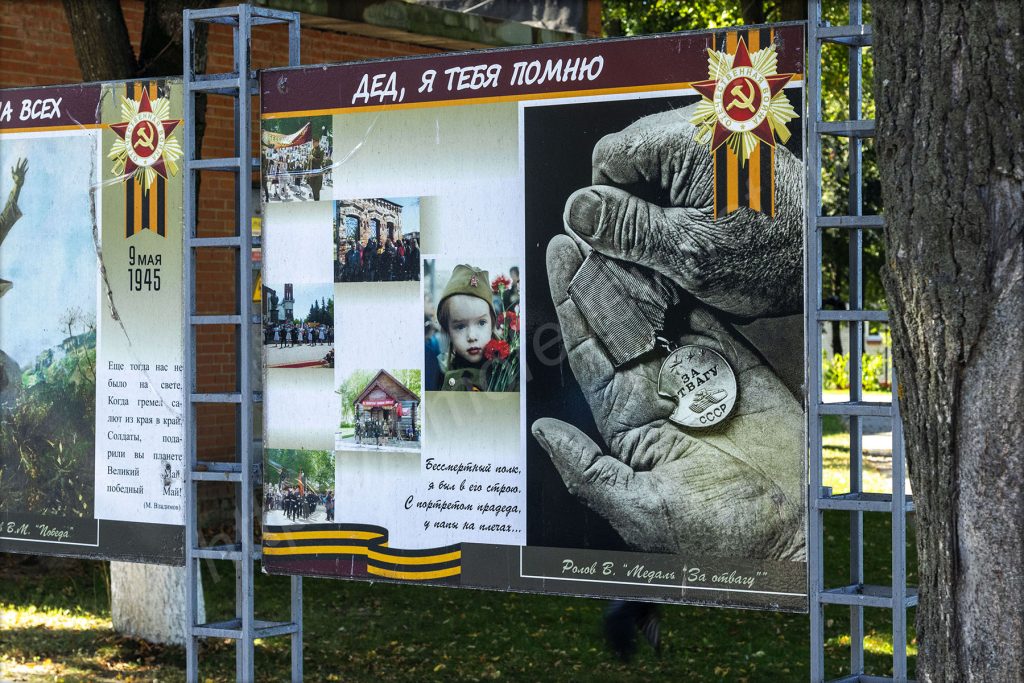 Несмотря на видимую нищету, здесь очень чисто и тихо. Прохожу мимо ЗАГСа, где сегодня нет особых пышных торжеств. Возле стоит доска почёта с фотографиями горожан, а также стенды с патриотическими темами, относящиеся к победе. Тут, в отличие от Элисты, где стенды были наполнены детскими рисунками, всё сделано профессионально, грамотно и красиво.