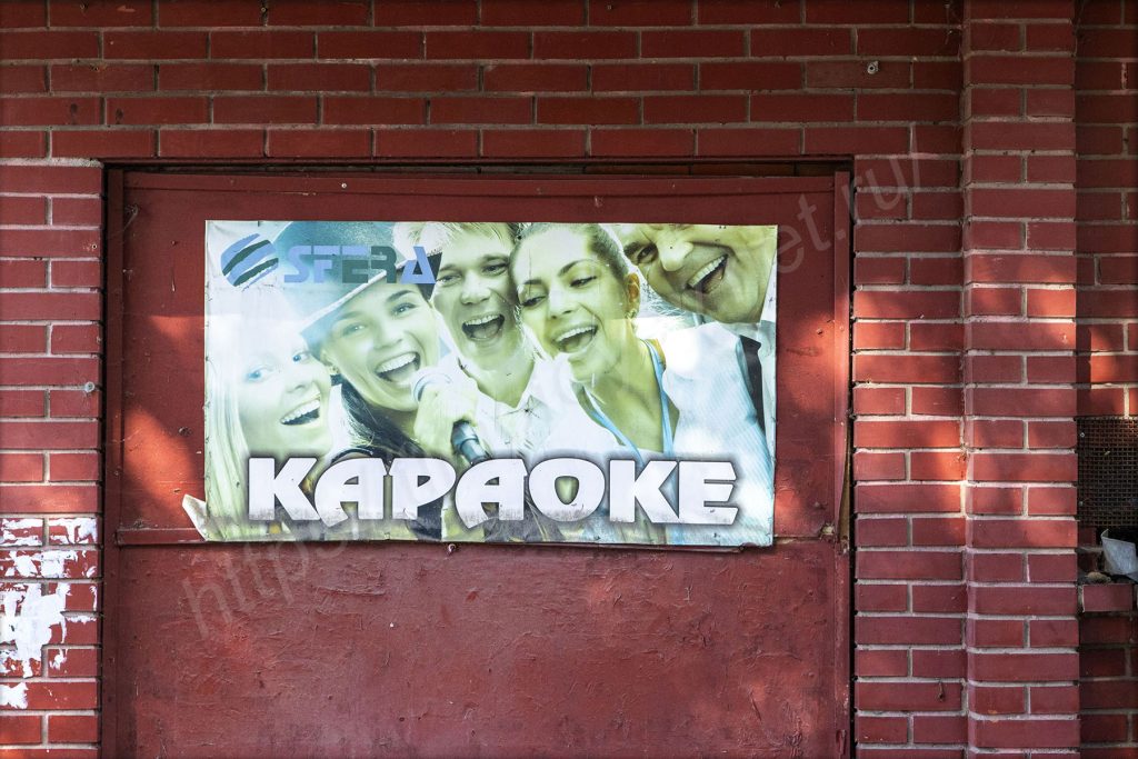 На стене библиотеки плакат «Караоке» с клипартной фотографией. Если в начале нулевых это было актуально и интересно использовать, и переиспользовать такие изображения, то сейчас уже проще сгенерировать изображение при помощи ИИ.
