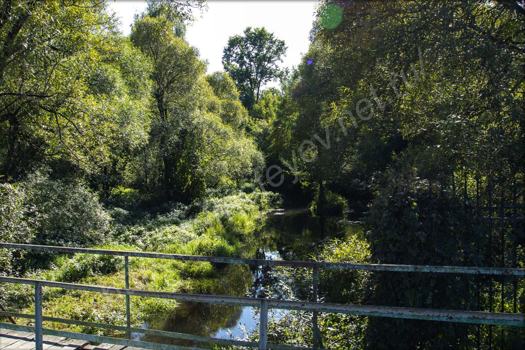 Дошёл до моста. Назвать Угодку рекой у меня не поворачивается язык. Здесь она слишком мелководна, но с другой стороны вода кристально прозрачная. Ничто её не баламутит. Рыбы только в ней не увидел. Берега не обустроены, кроме спусков у моста. Они выполнены из бетона.