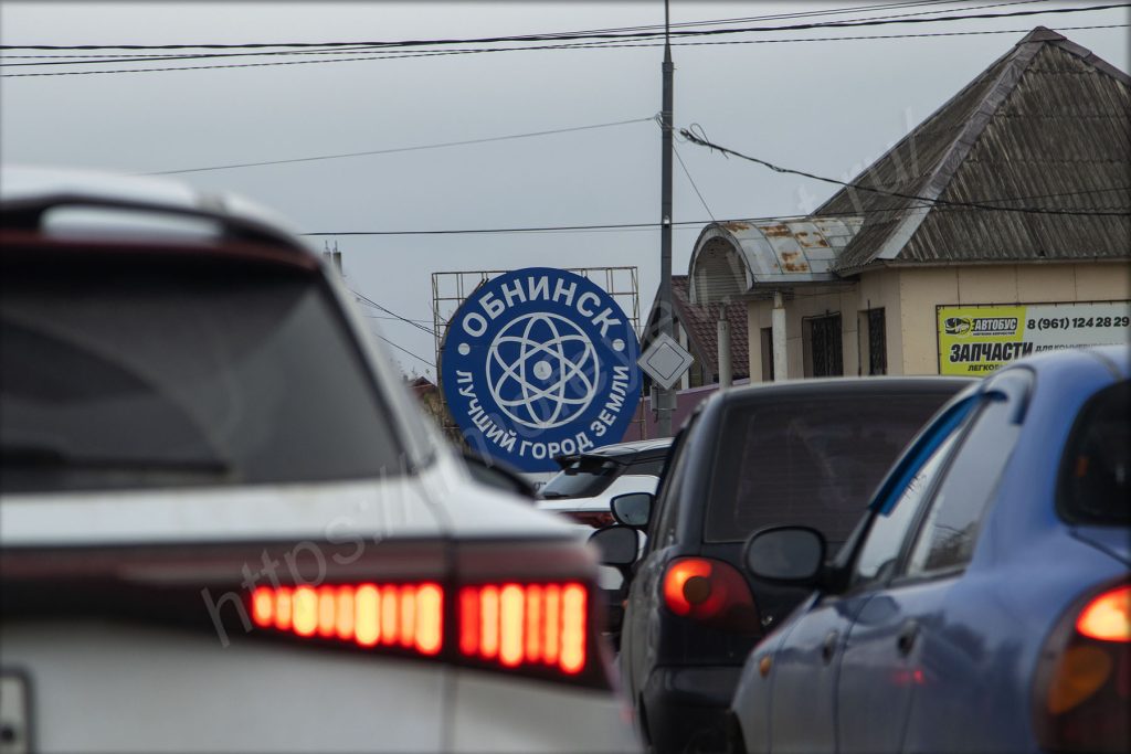 На перекрёстке с Киевским шоссе делаю фотографию: «Обнинск — лучший город земли» — в голове снова возникают ассоциации, когда мне давно рассказывали про то, что Пушкино — город-рай. Ничего райского там, конечно, нет, но сам факт. С этими мыслями проезжаю перекрёсток.