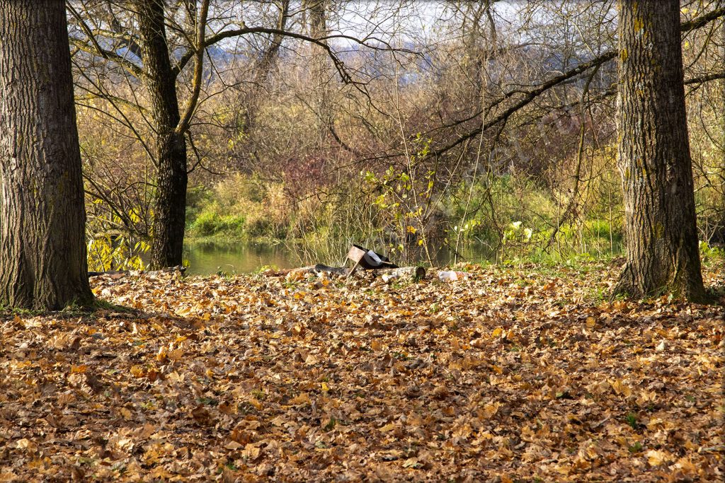 Чем дальше удаляюсь от парковки, тем сильнее ощущается вакуум. Звуки стали глухими, создавая равномерный фон. Лишь проезжающие по дороге машины чуть добавляют громкости. Ловишь себя на иллюзии некоторой депривации, когда ты целиком и полностью погрузился в природу. Иногда создаётся впечатление, что ничего не слышишь, даже шуршания листьев под ногами. Они, словно чешуйки, надёжно сцепились между собой, образовав плотное багровое покрывало, укрыв на зиму землю.