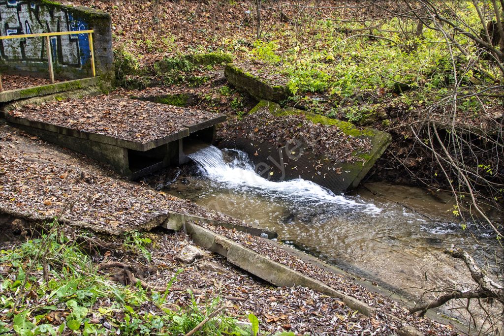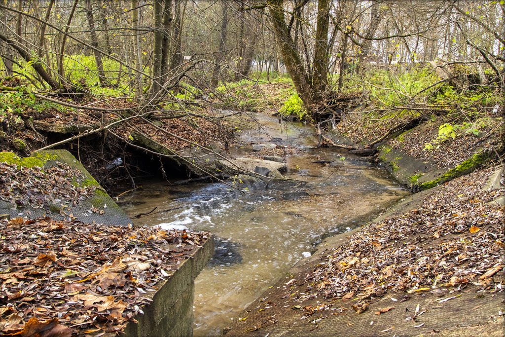 Прохожу под дорогой и попадаю на другую сторону Нижнего парка. Здесь видно, как эта речка сама пробивает себе русло, огибая образующиеся в нём островки, которые так и не смогли сточить бурлящие потоки воды. Эту картину завершают поваленные деревья — валежник над водой.