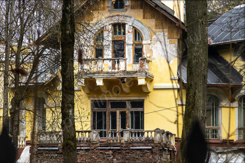 Из-за забора рассматриваю территорию усадьбы. Видно, что здесь был или даже ещё остался какой-то сад из кустарников, образующий общую ландшафтную зону, стоят лавочки в таком же плачевном состоянии, как и главное здание. Вроде это и красиво, но только в общих чертах и контурах прошлого. Вот только соприкасаясь деталей, невольно одёргиваешь взгляд, ощущая себя брезгливым человеком.