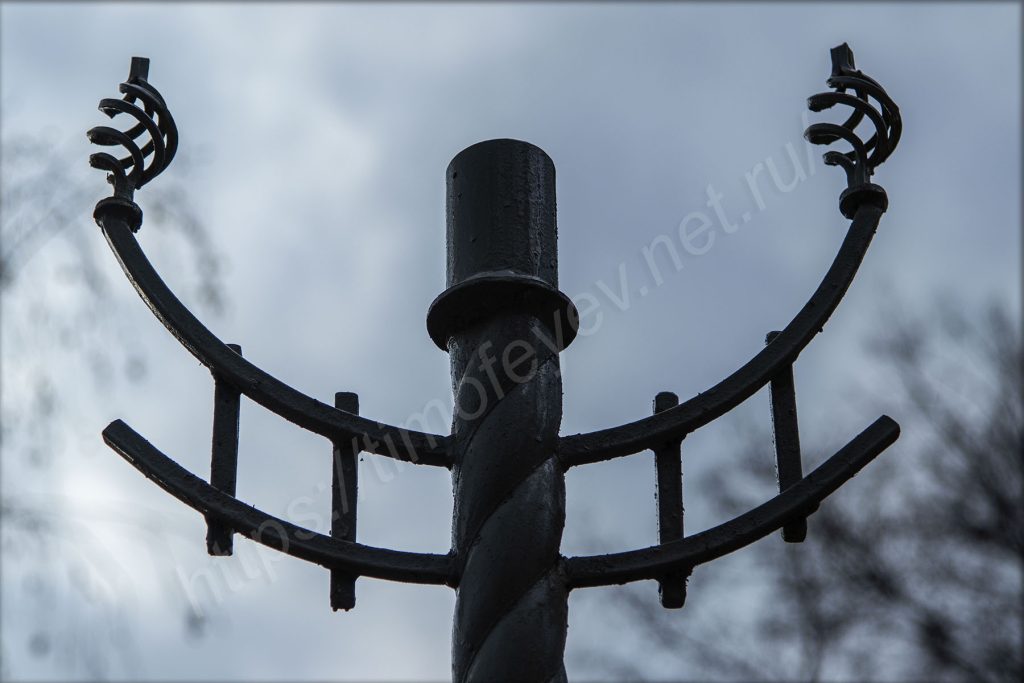Когда-то здесь было освещение со светильниками. Их давно побили, остались лишь вензеля и что-то от патронов под лампы. Всё обесточено давным-давно и восстанавливать явно не будет. Освещение теперь сделано с двух сторон моста большими светильниками с ДРЛ лампами, судя по всему.