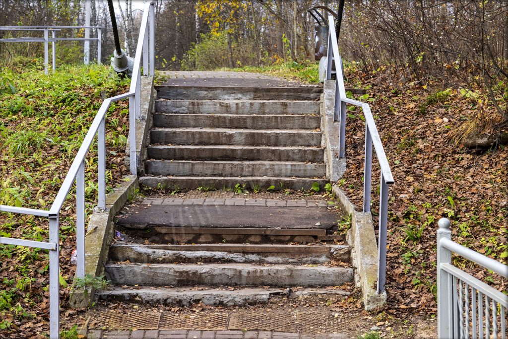 Перейдя на другую сторону, оказался у побитой временем лестницы. Точно такой же, как в Нижнем парке, где сегодня проходил, а рядом с ней асфальтированный и плавный спуск без ступеней для тех, кто боится пользоваться этой лестницей. За ними скорее берёзовая роща, чем тополиная, что была ранее. Вновь из-за туч пробивается солнце. Несмотря на то, что на часах всего лишь два часа дня, оно уже низкое.