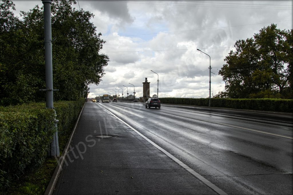 Помните про солнце — чуть выше? Я остановился и вышел из машины — опять пошёл дождь. Да что же ты такое-то?! Да и фиг с ним. Иду в сторону моста над рекой Волхов. Перспектива потихоньку открывается и отсюда получится сделать хорошую панорамную фотографию.