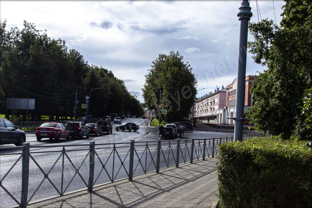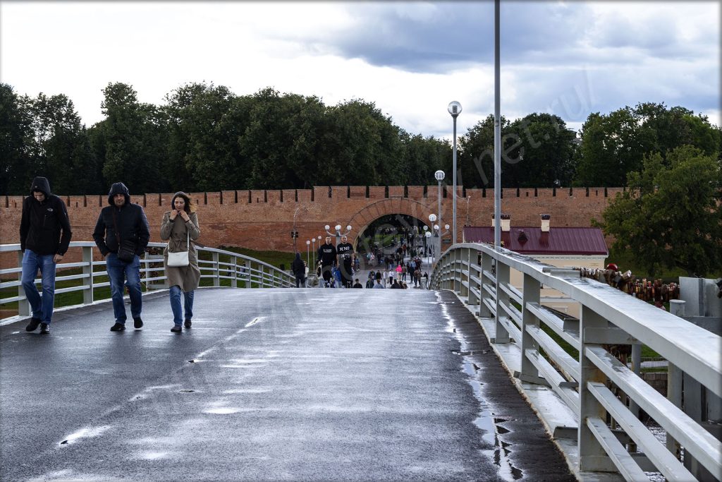 Дождя на улице уже не было и даже выглянуло солнце. Лишь мокрая плитка и асфальт на фоне расчистившегося неба. Судя по всему, в Новгороде с погодой точно так, как и в Санкт-Петербурге, то есть за пару часов можно увидеть все времена года. Впрочем, снега сегодня ещё не было. Рискну всё-таки прогуляться. В машине ставлю точку назначения у моста и с удивлением нахожу, что до него всего два километра. Мне показалось, что я сюда ехал очень долго.